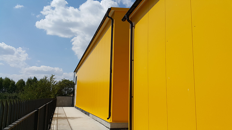 Budowa hali magazynowej o wymiarach 43,7 × 12,3 × 7 m i powierzchni ok. 538 m².