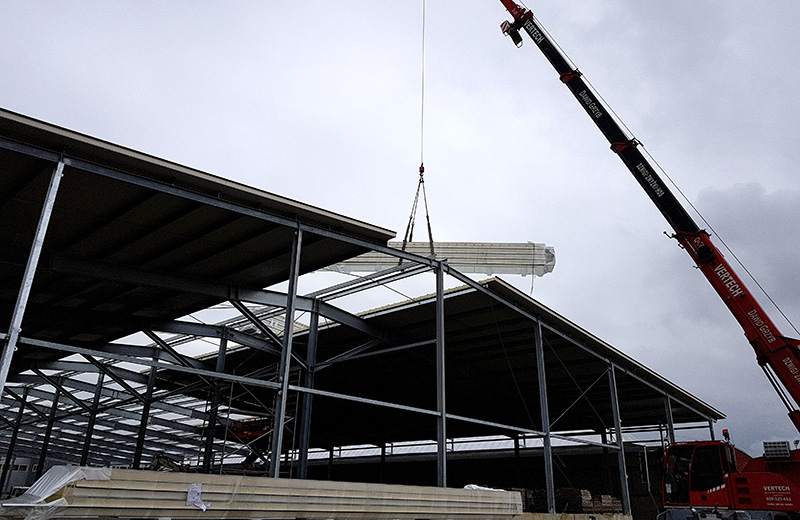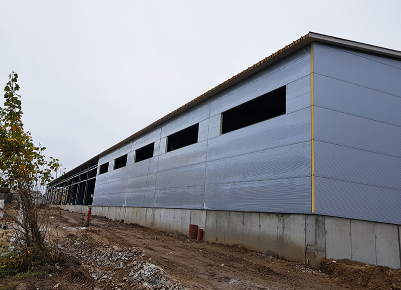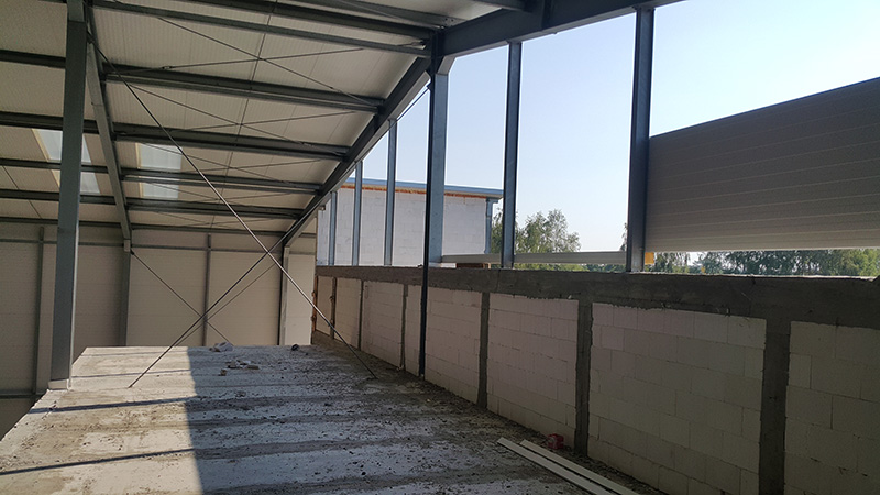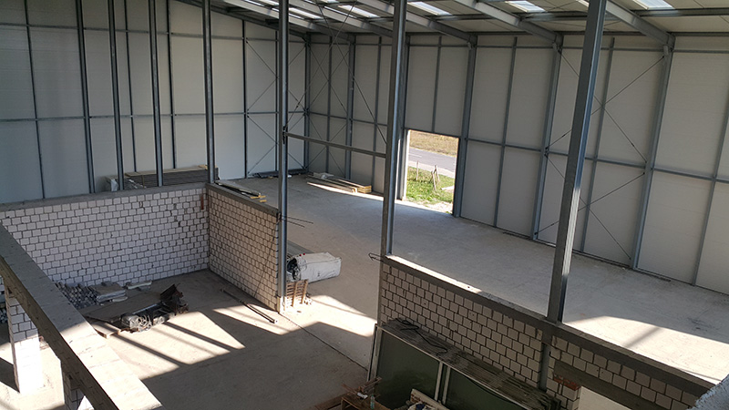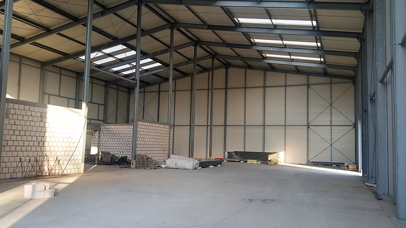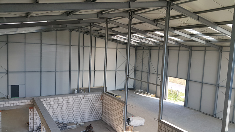 Budowa hali magazynowej o wymiarach 19,4 × 42 × 8,2 m i powierzchni ok. 815 m².