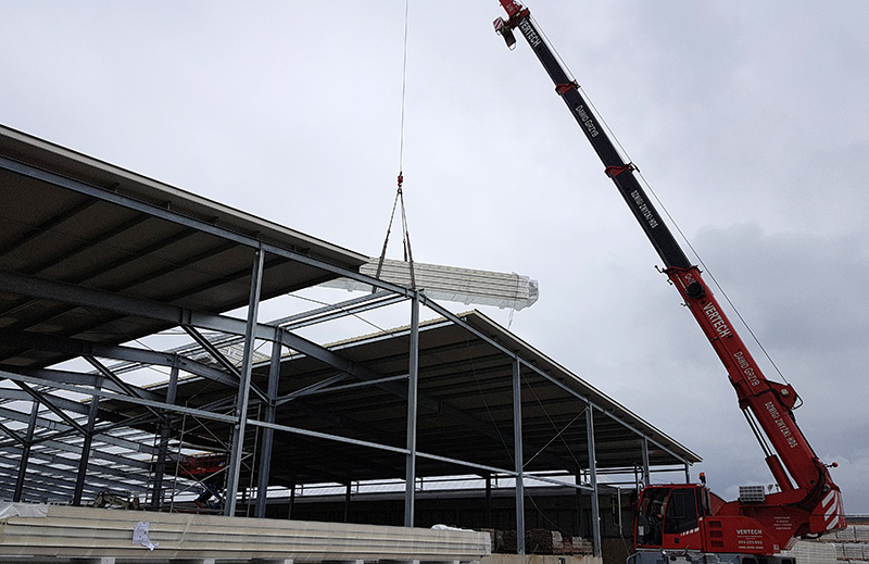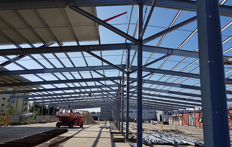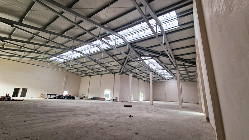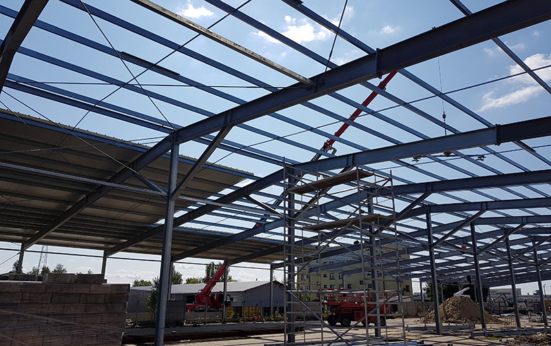 Realizacja hali usługowej o wymiarach 90 × 25 × 7 m i powierzchni ok. 2250 m².