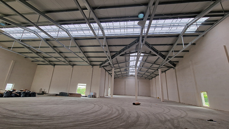 Budowa hali produkcyjnej o wymiarach 50 × 24 × 7 m i powierzchni ok. 1200 m².